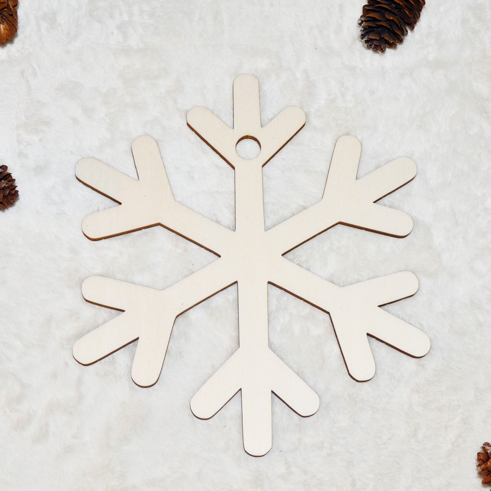 Acest fulg de zăpadă din lemn oferă o bază creativă pentru decorațiuni de Crăciun și proiecte DIY. Forma sa clasică se integrează ușor în brad, ghirlande sau decorațiuni de masă.